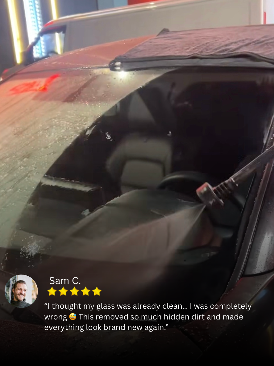 One-swipe glass coating that repels water, removes oil film, and improves night driving safety instantly
